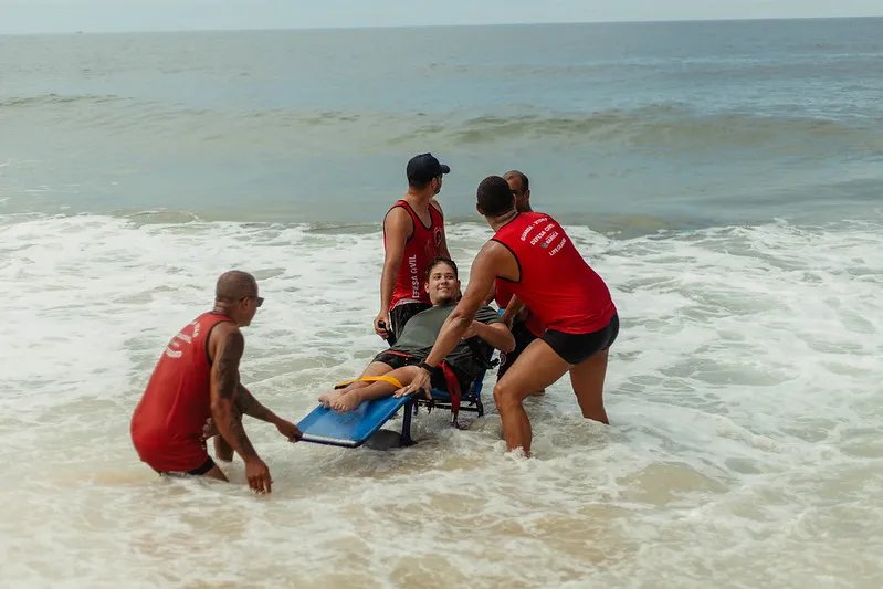 Entre os recursos disponíveis está a cadeira anfíbia, que facilita o deslocamento na areia e permite a entrada no mar com flutuação assistida, beneficiando cadeirantes e pessoas com mobilidade reduzida. As atividades priorizam a segurança e podem ser suspensas quando o mar não apresenta condições adequadas.