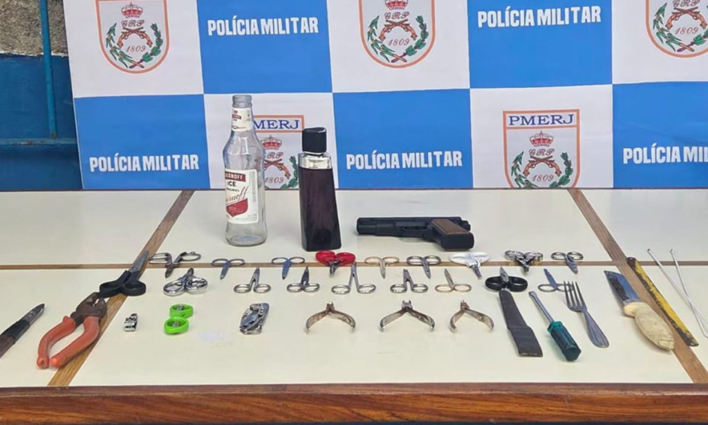 Entre os itens apreendidos estavam facas, tesouras e alicates, encontrados nos pontos de revista e bloqueio instalados ao longo da Avenida Primeiro de Março, principal acesso ao trajeto do bloco.