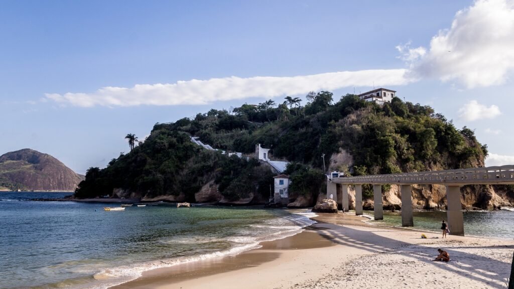 O calçadão à beira da Baía de Guanabara acompanha o litoral de Niterói, enquanto a Ilha da Boa Viagem se conecta ao continente por uma ponte estreita de concreto. A Praia Vermelha, que fica na orla da cidade, destaca-se como uma peculiaridade do litoral fluminense, devido a seu processo de aterramento para a instalação do Campus da Universidade Federal Fluminense (UFF). Atualmente, o local serve como o trajeto mais agradável até o Museu de Arte Contemporânea (MAC), projetado por Oscar Niemeyer.