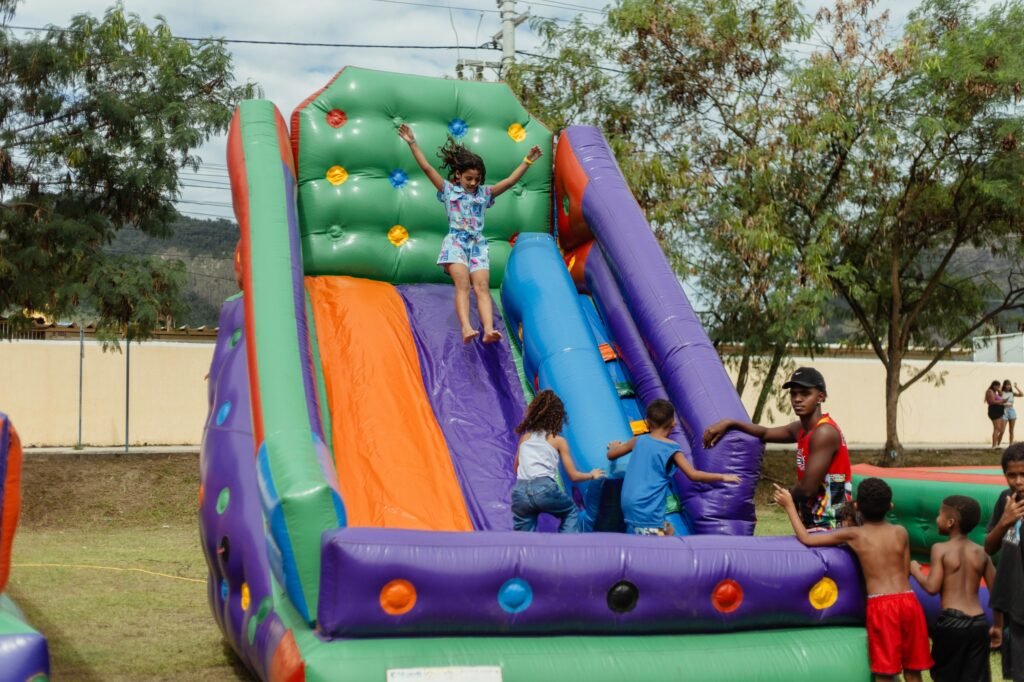 A iniciativa contou com diversas atividades recreativas, incluindo brinquedos infláveis como piscina de bolinhas, cama elástica e pula-pula, além de apresentações musicais e brincadeiras para o público infantil. Personagens temáticos, como o coelho da Páscoa, participaram da programação, promovendo interação com as crianças presentes.