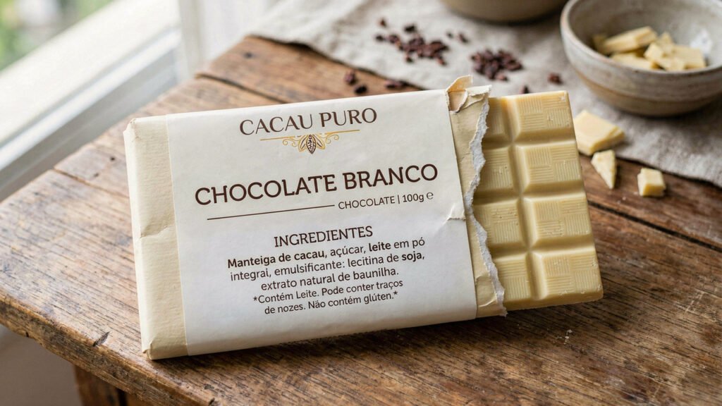 A principal diferença entre um chocolate branco legítimo e um simples bloco de gordura é a presença obrigatória de manteiga de cacau na formulação. Para que um produto possa ser classificado como chocolate branco, essa informação deve estar claramente indicada na embalagem. Assim, o consumidor consegue identificar, por meio da leitura atenta do rótulo, se está adquirindo um produto elaborado de acordo com as normas estabelecidas.