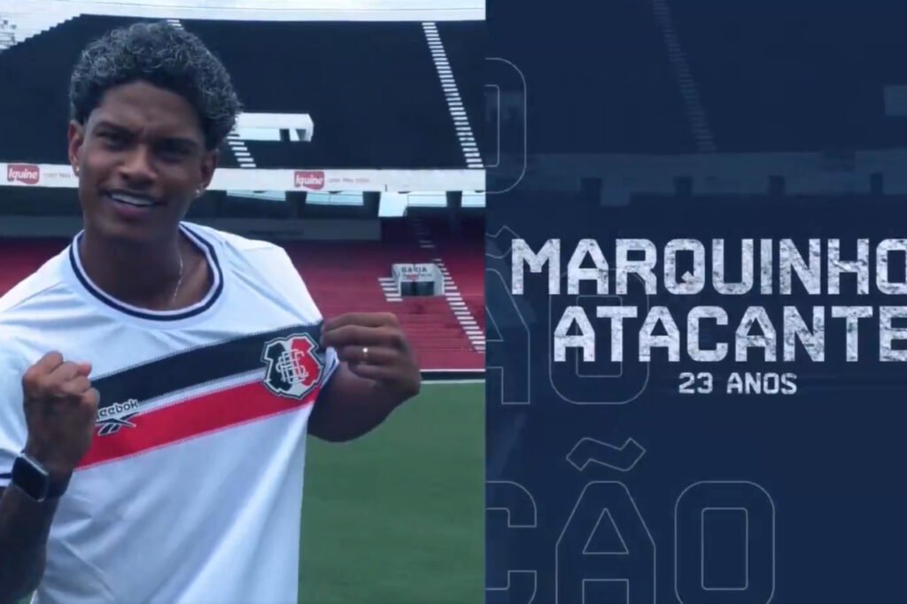O {TEAM_LINK|2253|Santa Cruz} confirmou, nesta quarta-feira (4), a contratação do centroavante Marquinhos. O jogador, de 23 anos, enfrentou o Tricolor no {COMPETITION_LINK|1782|Pernambucano} de 2026, atuando pelo {TEAM_LINK|242601|Maguary}, onde fez oito partidas e somou uma assistência.